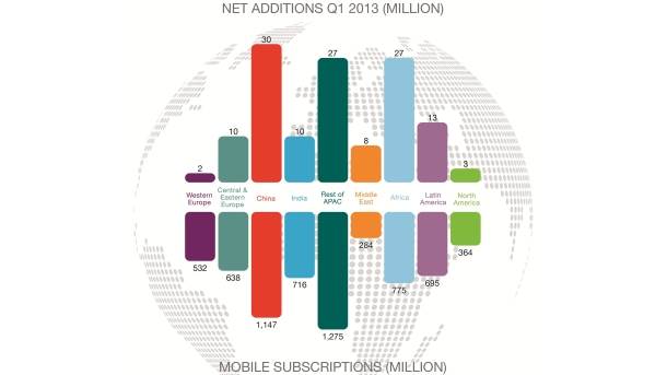 Situacija u regionima širom sveta i dalje će se razlikovati drastično. U 2018. gotovo svaki pretplatnik u Zapadnoj Evropi i Severnoj Americi imaće pametni mobilni telefon dok će isti imati samo 40 do 50 procenata pretplatnika na Bliskom Istoku i u Africi.