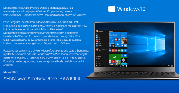 Microsoft od jula meseca, nakon velikog svetskog predstavljanja 29. jula, nastavio je sa predstavljanjem Windows 10 operativnog sistema, koje se održavaju u gradovima širom Srbije pod nazivom “Microsoft karavan”.