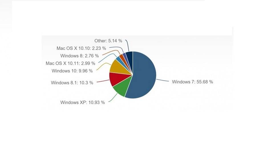 Windows 7 je i dalje najpopularniji Widnows operativni sistem sa 56 posto tržišnog udela. Ostale starije Windows verzije kao što su 8.1, 8, Vista i XP sada imaju 10.3, 2.76, 1.62 i 10.93 posto tržišnog udela. Sve verzije osim Windows 10 su u prošlom mesecu imale pad, piše GSM Arena.