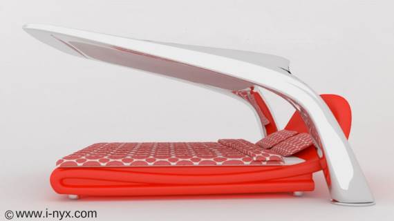 iNyx krevet je zapravo više kao samostalna spavaća soba nego sam krevet. Uz njega dolazi krov sa roletnama koje možete zatvoriti radi obezbeđivanja privatnosti i boljih uslova za spavanje. Ima ugrađenu rasvetu, ozvučenje, i projektor za gledanje sadržaja u HD rezoluciji, igranje igrica ili surfovanje internetom. A ovo su samo neke od mnoštva iNyx karakteristika.