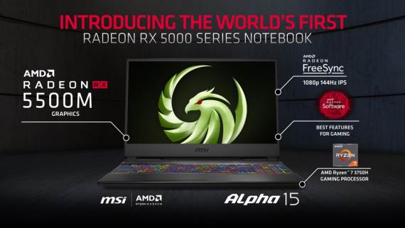 MSI će biti prvi proizvođač laptop računara, koji će krajem meseca lansirati uređaj sa AMD Radeon RX 5500M GPU-om i Ryzen 7 3750H mobilnim procesorom. MSI Alpha 15 će biti opremljen 144 Hz panelom dijagonale 15 inča i NVMe SSD-om od 512 GB.