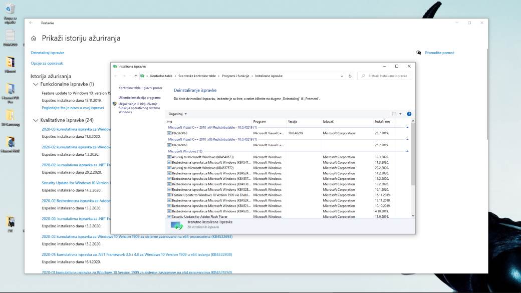 Ukoliko odlučite da obrišete ažuriranje uradite to kroz Start / Postavke / Ažuriranje i bezbednost / Prikaži istoriju ažuriranja i u listi potražite KB4535996 ažuriranje. Ako je na listi kliknite na Deinstalirajte ispravke. Otvara se još jedan prozor sa ispravkama instaliranim na uređaj. Pronađite opet KB4535996 i dvaput kliknite na njega, stisnite Yes i sačekajte da bude uklonjen. Nakon toga resetujte računar i trebalo bi da su rešeni problemi, koje smo opisali gore.