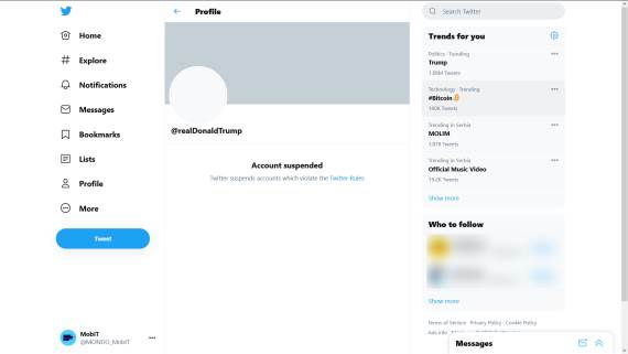 Sad i zvanično bivši predsednik SAD, Donald Tramp, ostao je zauvek bez svog Twitter naloga - @realDonaldTrump.