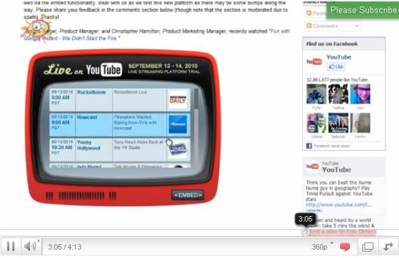 Od ponedeljka ujutru do utorka uveče četiri odabrana partnera, Next New Networks, Howcast, Young Hollywood i Rocketboom, uživo će prenositi svoj program na sajtu YouTube.