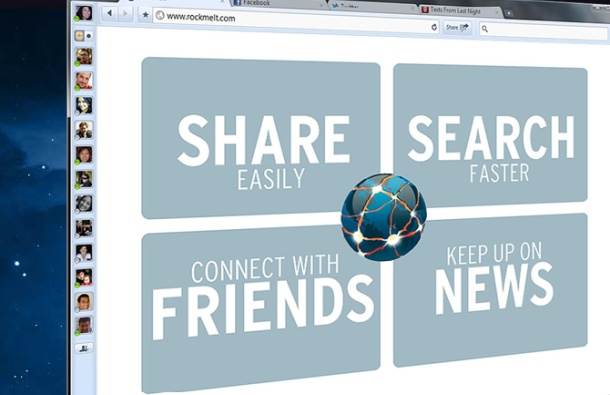 Čovek koji je stajao iza nekada popularnog pretraživača Netscape, Mark Andersen razvio je novi browser RockMelt. Pitate se šta je njegova prednost? Tim koji stoji iza ovog projekta naglasak stavlja na brzinu, i na činjenicu da je stepen integracije sa Facebookom i Twitterom takav da RockMelt zapravo i nije moguće koristiti ako nemate profil na Facebooku.