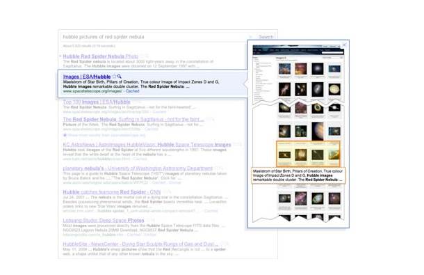 Klikom na malu mapu pored rezultata pretraživanja Google Instant Preview omogućava da se vidi "uzorak" sadržaja određenog sajta bez njegovog potpunog otvaranja.