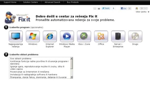 Fix it solution, na adresi www.support.microsoft.com/fixit/sr, obuhvata spektar Microsoft programa: Windows, Office, Serveri, Internet Explorer, Windows Media Player i drugo, kao i različite oblasti problema za svaki od ovih proizvoda.