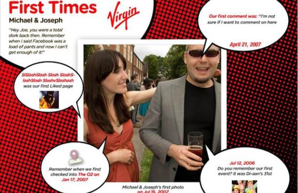 Virgin je lansirao aplikaciju za Facebook koja korisnicima pruža mogućnost da "otkriju" svoj "prvi put" sa prijateljima na Facebooku. Možete videti kada ste prvi put "tagovani" na istoj fotografiji, ili, na primer, kada ste prvi put bili zajedno na nekom događaju, kada ste prvi put oboje "lajkovali" istu stvar...