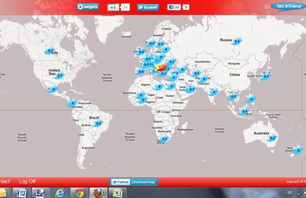 Potrebno je da TweepsMap povežete sa svojim Twitter nalogom i dobićete mapu na kojoj su plavim ptičicama označene zemlje i gradovi u kojima žive veši followeri, a crvena i žuta ptičica pokazuju mesta na kojima ih je najviše.