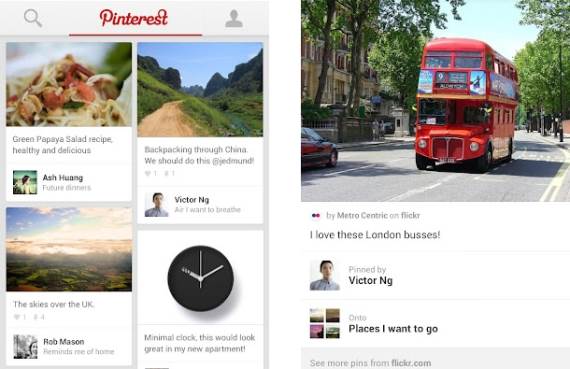 Android aplikacija pripremljena je za smartfone različitog tipa, kao i za tablet uređaje, a ima jednostavan i prilagodljiv interfejs, baš kao i sama veb lokacija Pinteresta.