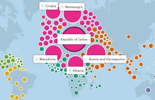 Kompletno istraživanja sa vrlo zanimljivim činjenicama i međudržavnim odnosima saznajte u interaktivnoj Facebook mapi OVDE.