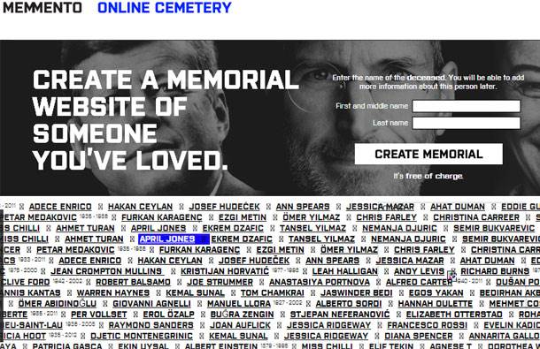 Sajt www.memmento.com omogućava da ljude koji su preminuli sahranite i na internet groblju koje možete posetiti kada god poželite. Svaki pokojnik dobija svoju adresu, koju možete podeliti sa drugim osobama, i to putem linka ili direktno na Facebooku, Twitteru i drugim mrežama.