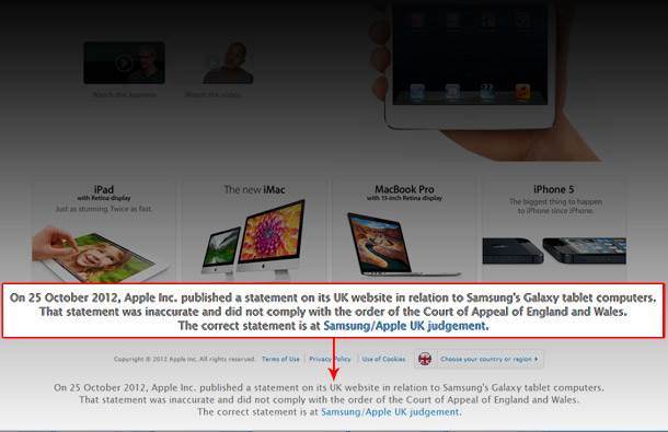Pod pritiskom, Apple je morao da ponovi svoju izjavu i sada stoji da Samsungovi tableti nisu kršili dizajnerske patente američke kompanije, a navedena su i mesta na kojima se mogu pročitati presuda i odluka suda. Izvini i dalje ne stoji u izjavi, ali je Apple ovog puta korisniku koji čita tih par redova jasno stavio do znanja da Samsung nije prekršio nijedan njegov patent.