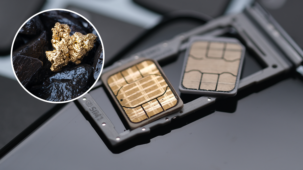 Elektronski uređaji poput SIM kartica, računara, matičnih ploča i drugih uređaja često sadrže sitne količine zlata u svojim konektorima, kontaktima i mikročipovima. Zbog svoje izuzetne provodljivosti i otpornosti na koroziju, zlato se koristi u proizvodnji elektronskih komponenti, ali ga ima vrlo malo u svakom pojedinačnom uređaju.
