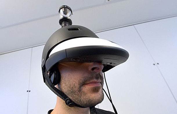 Cilj kacige jeste da poveća prirodno vidno polje čoveka na 360 stepeni lateralno. Sistem se zasad sastoji od elementa koji se mogu naći i na tržištu: klasične digitalne kamere, prenosivog računara i HMD kacige. Postavljena na vrhu kacige, kamera je uperena nagore, ka polukružnom ogledalu koji joj omogućava sliku od 360 stepeni.