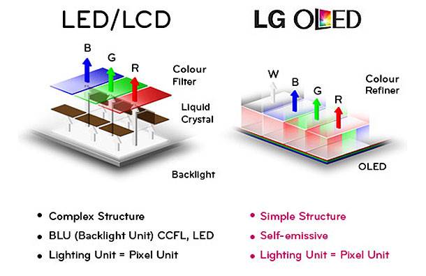 Kako bi se prikazala boja, tri različite boje (crvena, zelena i plava) se kombinuju tokom procesa koji reguliše jačinu svake boje ponaosob - od potpuno uključene do potpuno isključene. Ipak, proizvođači OLED panela su načelno nailazili na probleme kalibracije boja sa potpunom preciznošću. Kao pionir u ovom domenu, kompanija LG prevazišla je ovu prepreku tako što je svojim uređajima dodala beli piksel i specijalni usavršivač za optimizaciju boje.