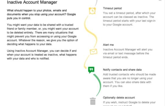 Neaktivnost naloga se može podesiti na mesec, tri ili šest meseci i na godinu dana, a nakon isteka tog perioda Google će postupiti onako kako ste vi želeli. Vaše podatke će trajno izbrisati ili ih proslediti rođaku, ženi, detetu ili nekoj drugoj osobi od povrerenja, koju ste vi odredili. Google će zadržati lozinke, ali će kompletni podaci korisnika postati vlasništvo odabrane osobe.