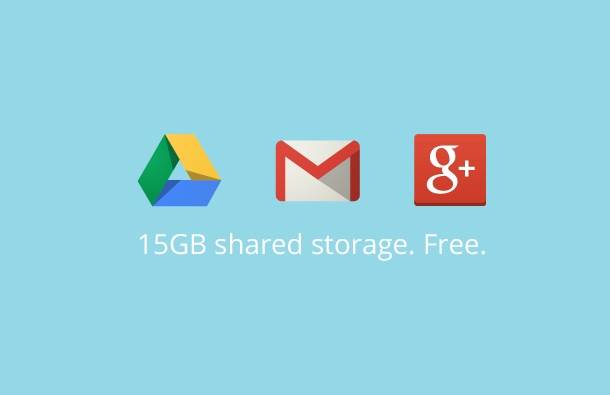 Google je objedinio zajednički Drive prostor za Google+, GMail i GDrive usluge, tako da se pomenutih 15 GB deli na sve tri Google aplikacije, koje omogućavaju korišćenje memorijskog resursa onako kako korisniku odgovara.