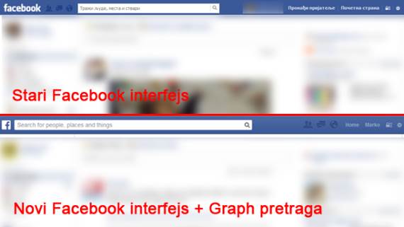 Zaglavlje Facebooka je pretumbano, pa su neke od opcija promenile mesto, ali pretraga je i dalje njegov centralni deo. Ikonice su nešto veće, uočljivije, a Facebook natpis je zamenjen prepoznatljivim logoom društvene mreže. Polje sa novostima je nepromenjeno, kao i čet opcije dostupne sa desne i dodatne informacije i grupe, sa leve strane, oko NewsFeeda.