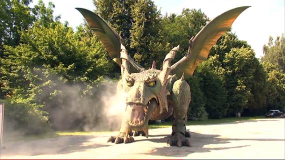 Dugačak je 15.5 metara, bljuje vatru (kroz nozdrve i na usta), maše repom, samostalno se kreće, raspon krila mu je skoro 13 metara i težak je preko 11 tona!