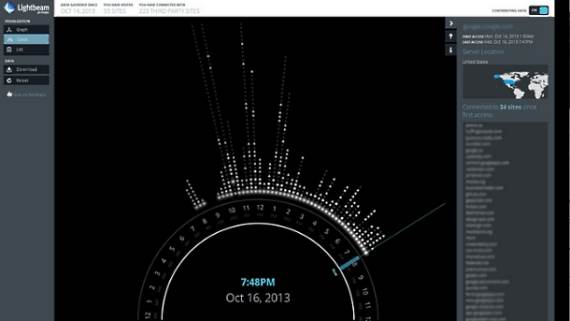 Lightbeam for Firefox 1.0.2 je besplatna ekstenzija za Firefox pregledač veba i kroz vizuelizovani, odnosno na slikovit način pokazuje korisniku ko prati njegove podatke na nekom sajtu i koji podaci treća lica tačno interesuju.