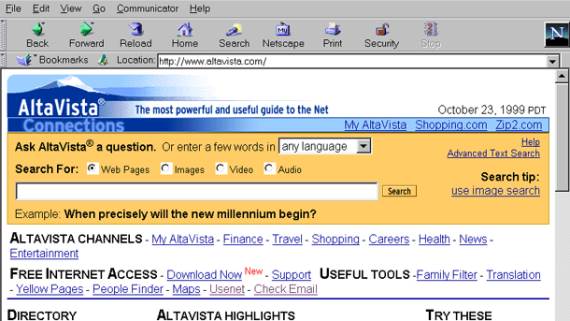 Pre Googla, koji se pojavio 1998. godine, postojala je AltaVista. Sećate se tog internet pretraživača? Suvi tekst, hrpa linkova, smešno tamnožuto zaglavlje i ostali slovni sadržaji tada su bili ultra-dostignuće, a danas na to gledamo kao na drag početak, za koji je dobro da je evoluirao. AltaVista se pojavila 1995. godine, a 2003. ju je kupio Yahoo, da bi 8. jula 2013. bila potpuno ugašena.