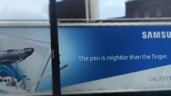 Galaxy Tablet Note 10.1 edicija 2014 razlikuje se od svih drugih tableta upravo po olovci. Engleski prevod olovke glasi "Pen", naravno. Upravo kod te reči i pomoćnog glagola "IS" došlo je do zabune. Na jednom reklamnom bilbordu konstrukcija "Pen is" preformulisana je u "Penis". Ups!