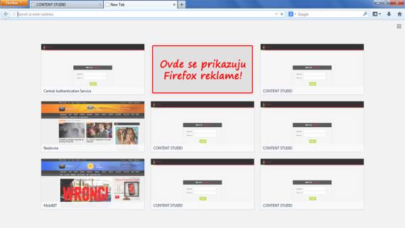 Novim korisnicima internet pregledača Firefox mogle bi se uskoro pojaviti reklame. U pitanju će biti sponzorisani sadržaj koji će popunjavati prostor na koji korisnik inače može da smesti često posećene ili omiljene stranice, odnosno tabove.