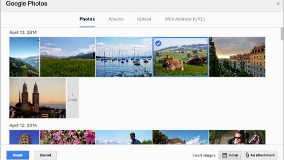 Nove funkcije mejla za one koji koriste auto bekap na telefonu omogućavaju da se direktno sa veba ubace fotke sa telefona u mejl, da se odjednom pošalje više fotografija ili da se čak promeni njihova veličina pre slanja direktno preko GMail aplikacije na internetu. Ukoliko organizujete svoje fotografije sa telefona u folderima Google Plus servisa možete čak slati i cele foldere. Fotografije možete ubaciti direktno u "telo" mejla ili kao prilog.