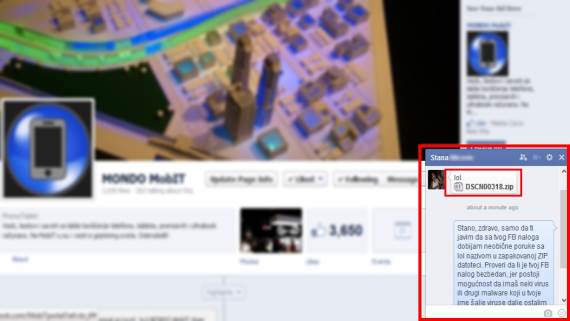 Korisniku Facebooka, odnosno vašem prijatelju s kojeg naloga je datoteka s virusom stigla pošaljite poruku da proveri šta se dešava sa njegovim Fejs nalogom i da skenira računar antivirus softverom, jer će sa naloga te osobe virus nastaviti da se širi dalje, dok god ne bude uklonjen.