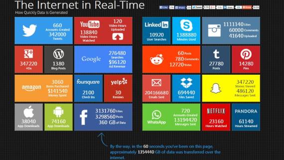 Za jedan minut na internetu "obrne" se, prema našem trenutku merenja, čak 1.354.440 gigabajta podataka, a na slici pogledajte tačno i koliko na svakom od obeleženih sajtova.
