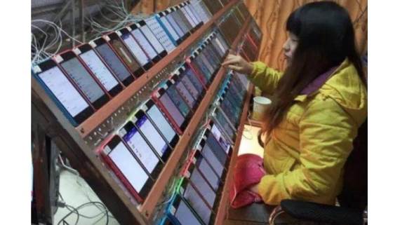 Fotografija objavljena na društvenoj mreži Weibo otkrila je navodno kako jedna kineskinja radi na lažiranju rezultata uspešnosti i popularnosti aplikacija u okviru AppStora. Ona, prema izvoru i potpisu fotke, na stotinak telefona briše i instalira aplikacije iznova, ocenjujući ih uvek sa različitog AppStore naloga i pomaže u popularizaciji i boljoj opštoj oceni aplikacije na AppStoru.
