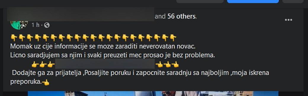 S druge strane oštećeni su i svi prijatelji ove osobe, čiji je profil hakovan, jer se njihov profil pojavljuje na brojnim pomenutim objavama, a moraju da trpe i maltretiranje preko Messenger poruka.